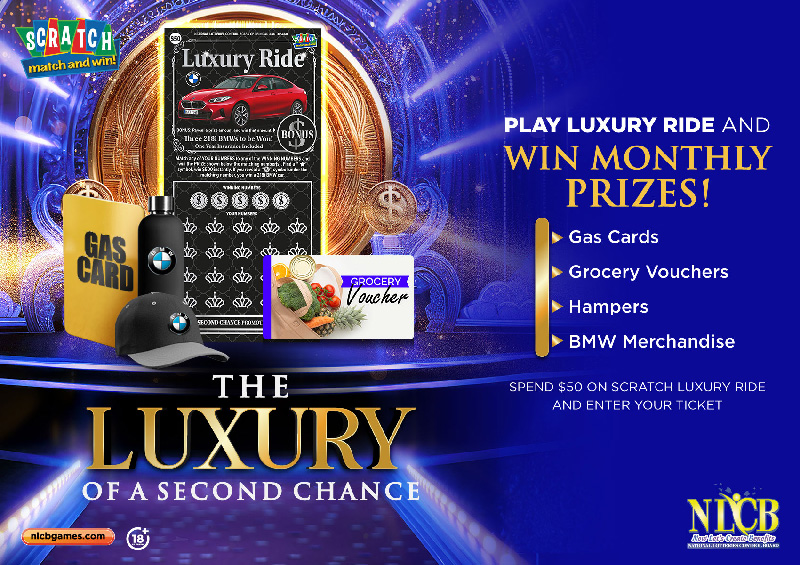 With The Luxury of a Second Chance Promotion, every $50 NLCB Scratch Luxury Ride ticket gives you a chance to win exciting monthly prizes.